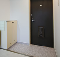 一般的に土間=コンクリートがイメージされますが、タイル調のフロアタイルを張る事でオシャレポイントが1つ増えます。
